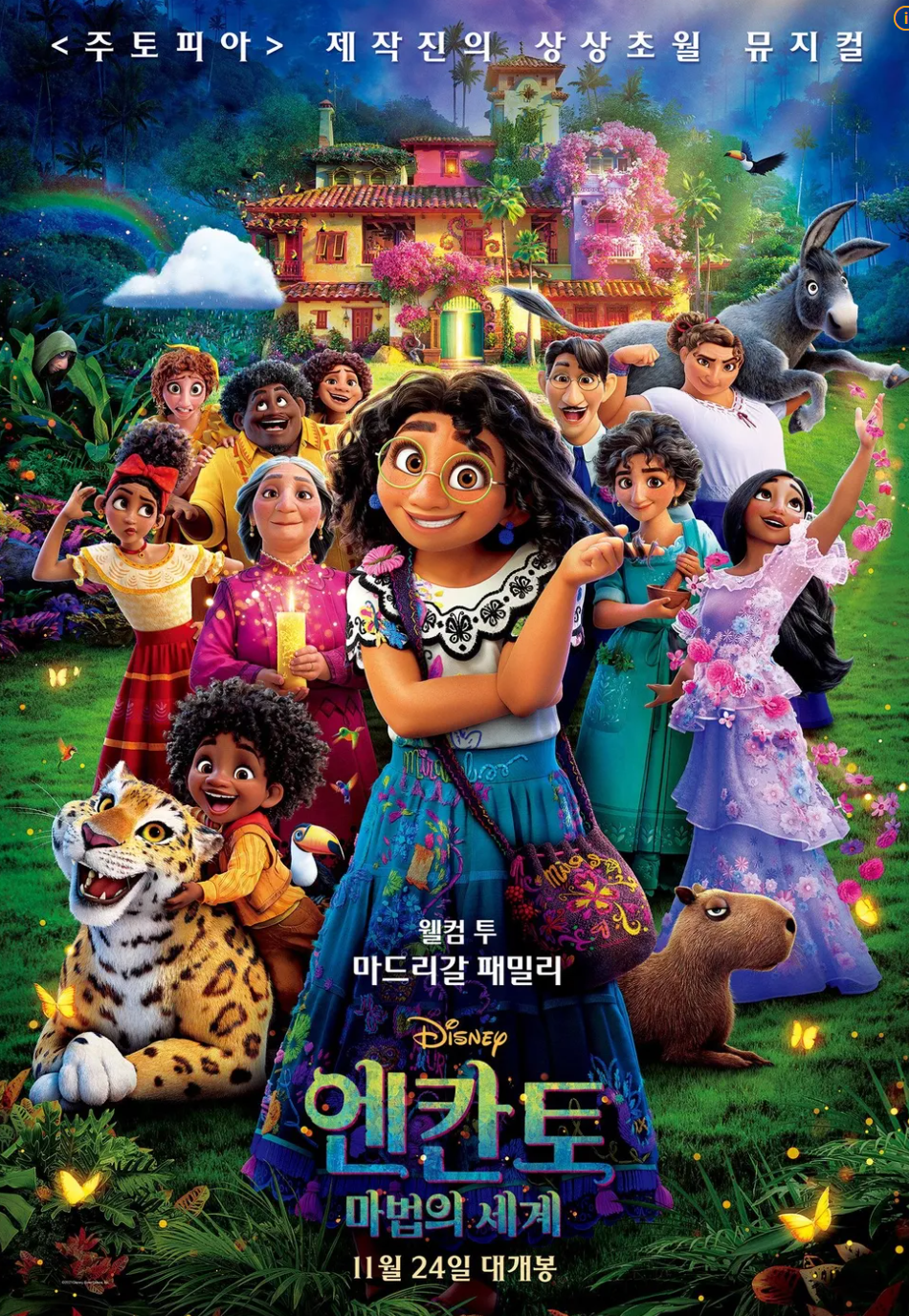 《엔칸토: 마법의 세계》는 디즈니가 선보인 60번째 장편 애니메이션으로, 가족 안에서의 개성과 이해, 진정한 사랑의 의미를 따뜻하게 그려낸 작품이다. 이야기의 중심은 마드리갈이라는 대가족이며, 이 가족은 수십 년 전 기적적으로 생긴 마법의 집 ‘카시타’와 함께 살아간다. 각 가족 구성원은 초자연적인 능력을 부여받지만, 주인공 미라벨은 유일하게 능력이 없다. 그녀는 늘 자신이 ‘특별하지 않다’는 열등감과 가족 안에서의 소외감을 느끼며 성장한다. 이런 갈등은 단순히 판타지 설정에 그치지 않고, 현대 가족 안에서 아이들이 겪는 ‘기대감과 비교’라는 현실적인 문제를 반영한다.
