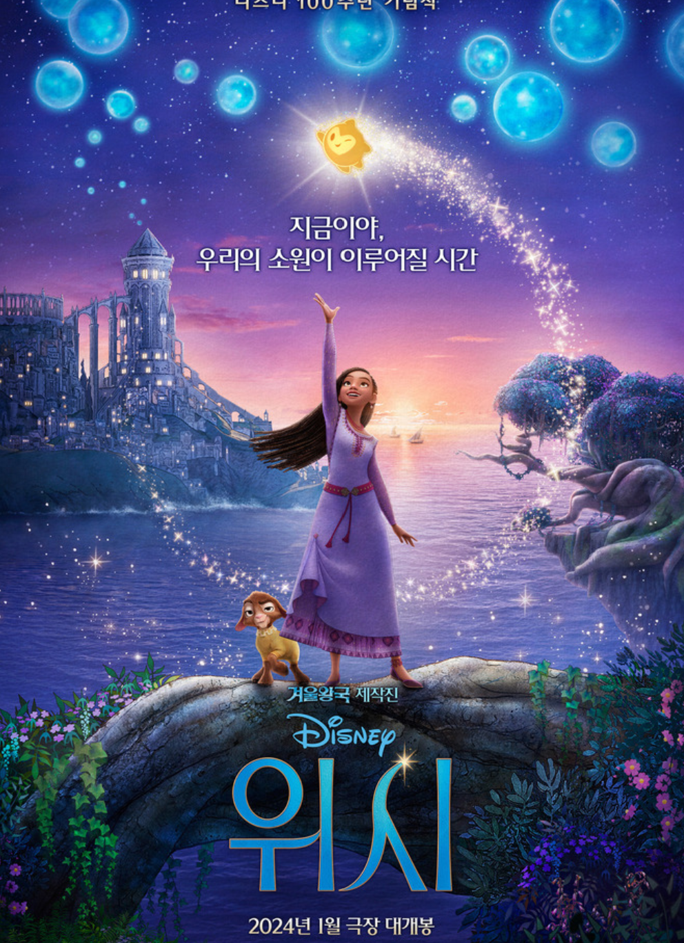 2023년 개봉한 디즈니 애니메이션 위시(Wish)는 디즈니 100주년을 기념하는 작품으로, 소원을 이루는 마법을 주제로 한 판타지 애니메이션이다. 주인공 아샤는 소원을 지닌 사람들의 꿈이 마법사 매그니피코에게 억눌리는 현실을 목격하고, 자신의 진심과 용기를 통해 모두의 소원을 되찾기 위한 모험을 떠난다. 이 영화는 디즈니 전통의 이야기 구조와 아름다운 작화, 감동적인 음악을 통해 전 세대가 공감할 수 있는 메시지를 전한다. 디즈니 팬이라면 반드시 눈여겨볼 작품이다.